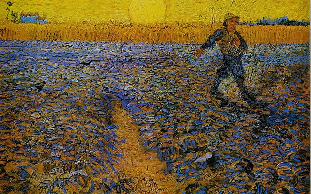 Heb jij ook een lievelingsschilder? Eentje van wiens schilderijen je hart sneller gaat kloppen? Bij mij is dat al jaren Vincent van Gogh! Nu ga ik niet uitvoerig uitweiden over zijn leven, want daar is genoeg over te vinden, bijvoorbeeld op Wikipedia. Tja, waarom word ik nou zo gelukkig van Van Gogh? Het is een gevoel: De kleuren, de penseelstreken, zo fijn om naar te kijken. En de fascinatie van de man voor de kleur geel, dat komt ook helemaal bij mij binnen! De sfeer van bovenstaand schilderij (de zaaier), de warmte is gewoon voelbaar. Heerlijk! Het geeft me een gevoel van geluk. Het is meer dan het kijken naar een afbeelding en deze mooi vinden. Ik word diep geraakt! Zou Vincent zelf ook zo´n geluksgevoel hebben gehad tijdens het schilderen? En toen het af was? Het moet haast wel. Waren dit dan de geluksmomenten in zijn moeizame leven? Zo jammer dat hij tijdens zijn leven niet de waardering heeft gekregen die hem zo toekwam.